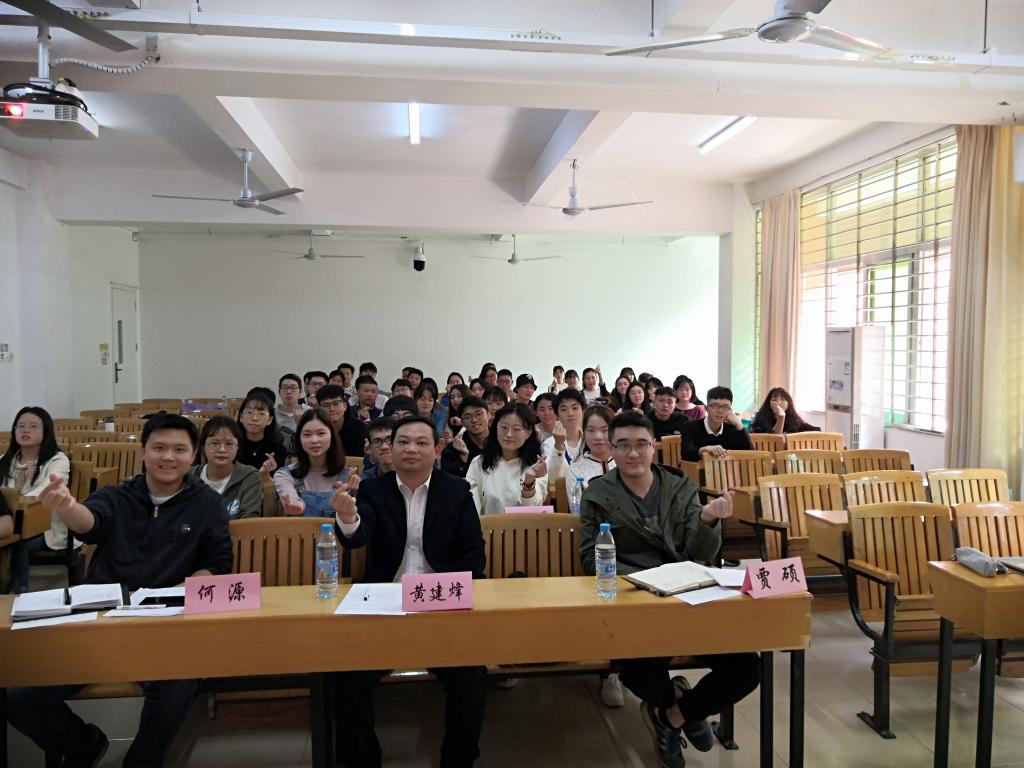 党委书记黄建烽,学工办副主任何源,辅导员黄丹婷、贾硕。